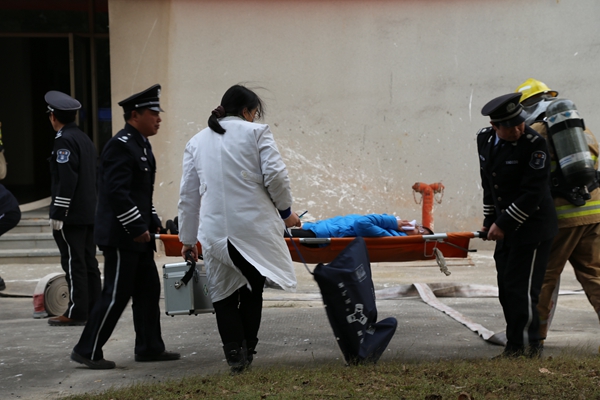 、校后勤管理处、校保卫处、教务处等相关部门负责人观摩了此次演练。