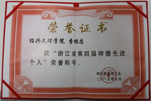从省教育工会传来喜讯,狂人小说 教师季根忠教授荣获“浙江省第四届师德先进个人”荣誉称号。