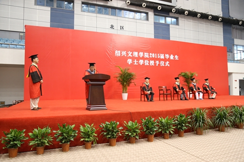 学院院长齐陈泽教授为毕业生致辞,他向顺利毕业、即将开始崭新人生旅程的2015届毕业生表示热烈的祝贺和美好的祝愿。他回忆了2015届毕业生在校园里美好的青春足迹,对大家学有所成感到无比的欣慰,并语重心长地嘱咐同学们,无论现在和未来怎样,都要永不停歇追求成长的脚步。在奉献社会、服务地方中实现自我价值,以自强不息和艰苦奋斗的精神,成为社会的中坚;要坚持学习,形成终身学习的良好习惯,保持学习的动力和创造的活力,从书本、交往、挫折、社会实践中学习,以勤于思索、勇于创新的精神追求卓越的人生境界;要坚守高尚的品格,要坚守良知、懂得感恩、讲诚信、讲奉献;要脚踏实地,保持谦虚的态度、豁达的心态和宽容的性情,相信自己的未来掌握在自己手中。最后,他深切地说,“虽然今天你们要告别母校了,但你们中的每一位,仍然是绍兴文理人,这是你们人生的印迹。在此,我感谢你们四年来与这个学院共同成长。我也希望,当你们安顿好工作和生活,有了时间,就常回家看看。”