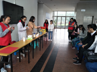 志愿者在本校志廉楼大厅设点,为广大师生讲解了污水处理相关流程,并在现场通过“蒸馏法”演示污水净化的实验,呼吁广大师生积极参与治水工作。