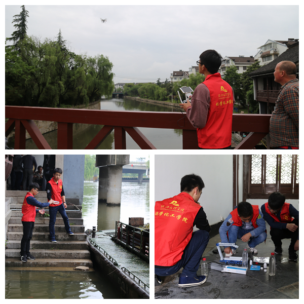 现场还展示了无人机巡河技术,利用分光光度计现场测量护城河水质的酸碱度,并将取样水带回学校科研室进一步检测,用科学之力为“剿灭(劣)Ⅴ类水”工作添砖加瓦。除此之外,学院志愿者先后组织开展了污水检验、“水资源保护”科普宣讲进小学、“争做河小二”护河活动、剿灭劣Ⅴ类水环保骑行等志愿活动。