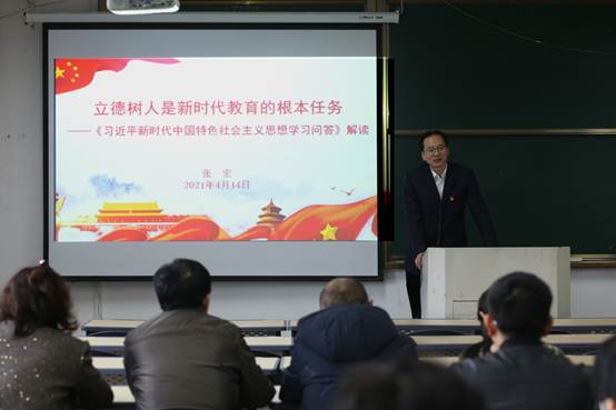 上党史学习教育专题党课,宣讲习近平新时代中国特色社会主义思想,解读《习近平新时代中国特色社会主义思想学习问答》。专题党课以“立德树人是新时代教育的根本任务”为主题。学院全体师生党员参加了此次党课。