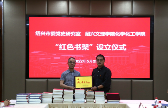 “红色书架”设立仪式上,市委党史研究室机关支部专职副书记范机灵为学院“红色书架”授牌,市委党史研究室综合处副处长为学院赠送红色书籍,学院执行院长曾敏峰、学院党委副书记王颖分别代表接受了授牌和赠书。