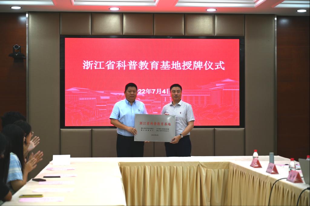 党委副书记(主持工作)徐青共同为浙江省科普教育基地授牌。
