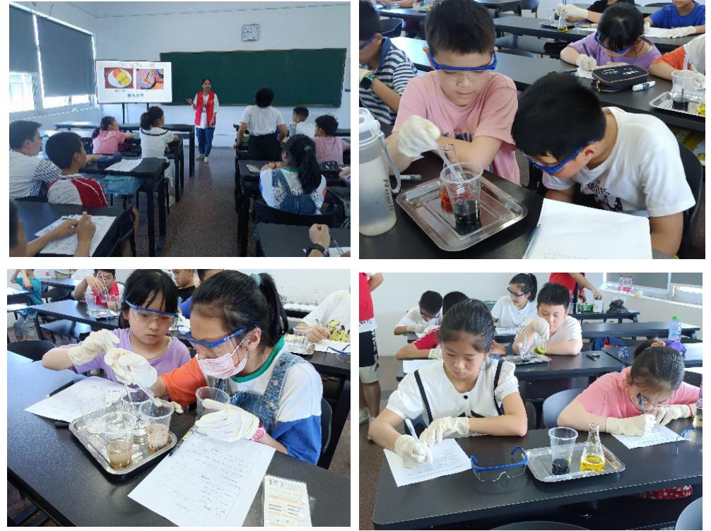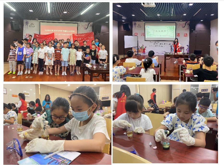 7月2日,在府山街道西小路社区开展明矾净水和化学红绿灯趣味化学实验,宣传水资源保护,科普氧化还原变色反应。