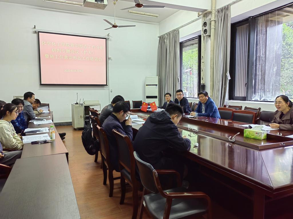 11月9日中午,学院在志廉楼136会议室召开2022年下半年思想政治和意识形态工作专题分析研判(扩大)会议暨2021学年班主任工作培训考核会,学院执行院长曾敏峰、党委副书记(主持工作)徐青、副院长陶菲菲、董华平、党委副书记王颖,全体党支部书记、班主任、辅导员参加了会议。会议由学院党委副书记王颖主持。