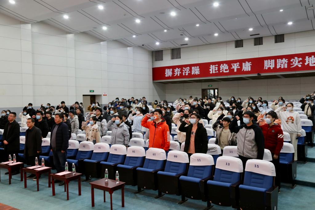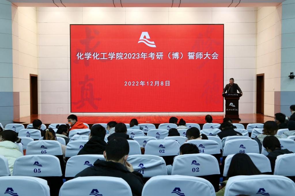 2023考研(博)誓师大会在铁城科教馆报告厅隆重举行。学院执行院长曾敏峰、党委副书记(主持工作)徐青、党委副书记王颖,校心理健康主任徐浩、学院学生科相关老师,考博考研的133位学生参加了大会,会议由学院党委副书记王颖主持。
