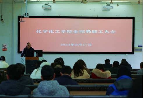 “开局就是决战、起步就是冲刺”,为了让全体教职工迅速把思想和精力投入新学期工作中来,开好局起好步,确保全年各项工作任务高质量完成,2月17日午,化学化工学院在理工楼134召开新学期教职工大会学院全体教职工参加会议,会议由学院曾敏峰执行院长主持。