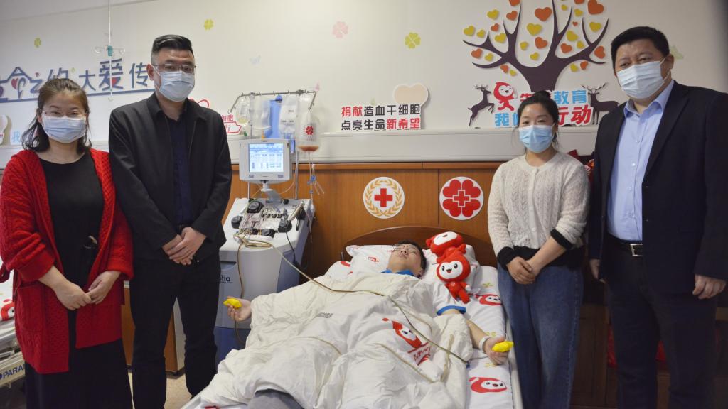 4月4日,学校相关领导和老师都来到了浙江金华,陪潘同学一起完成造血干细胞的捐献。在老师、家人和志愿者们的陪伴下,潘同学走进采样室,完成了造血干细胞的采集,为一个家庭带去延续生命的希望。