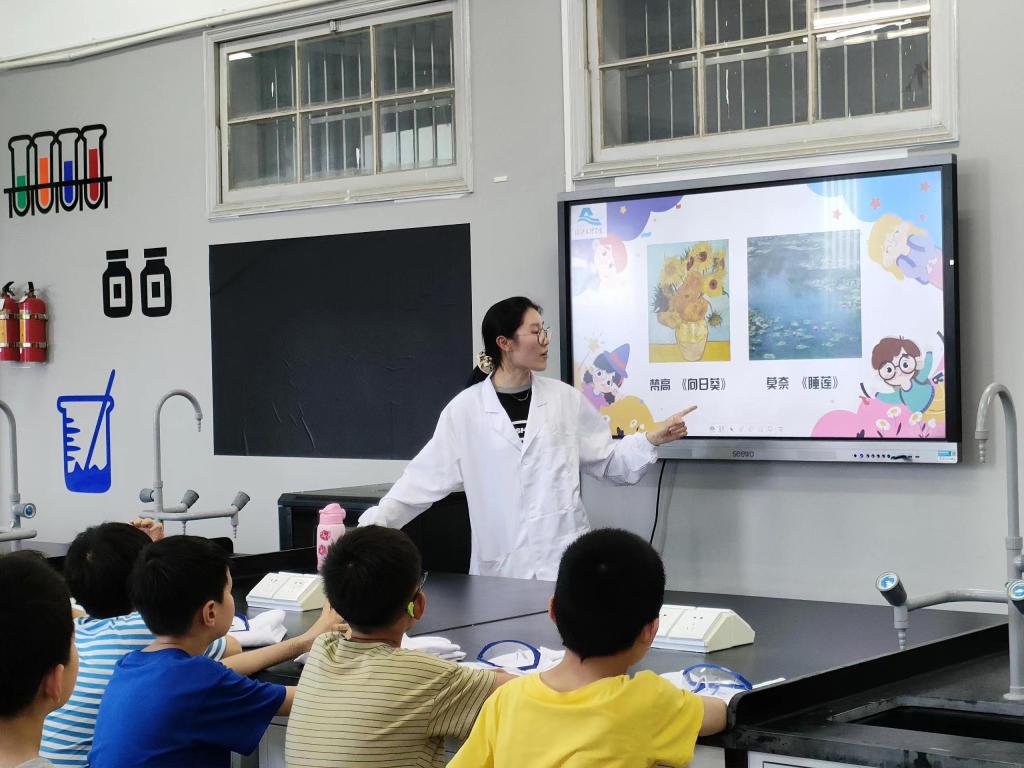 在大学的实验室里挖呀挖呀挖:画“显色”的小猫,开“水中”的花;种“探索”的种子,开“科学”的花。