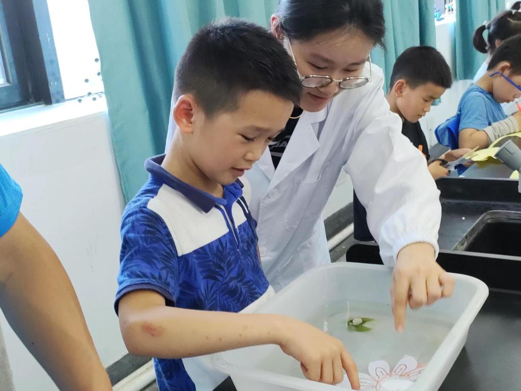 “神奇的水中花”实验帮助同学们了解表面张力: