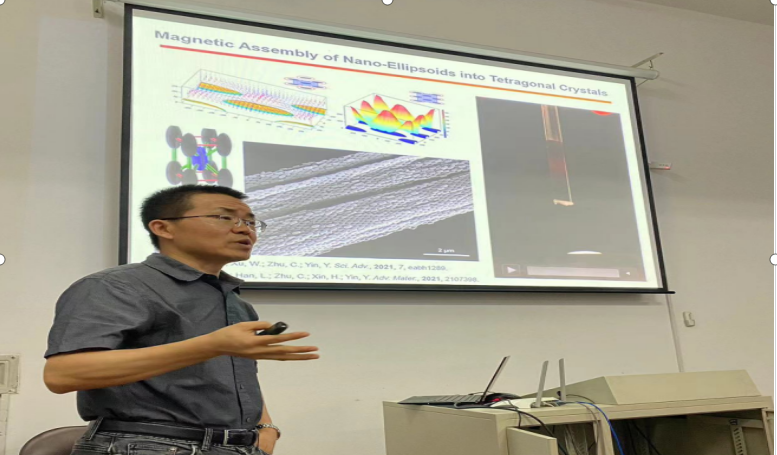 报告会中,殷亚东教授为大家介绍了课题组在过去20年中在智能材料领域的研究成果,重点介绍了具有响应性光学、声学和机械特性的纳米结构材料的合成和组装,这些材料可应用于打印、传感、生物成像、防伪等技术,并向与会人员分享了自己在材料领域科研的契机和经历。郝勇研究员给大家分享了国家基础科学研究中心平台成立的背景和目的,并详细介绍了课题组在低温制氢领域的研究成果,与传统热催化制氢所需的800-1000 oC高温相比,他们通过逐步分离产物的方法可以在400 oC的低温就实现高效制氢。