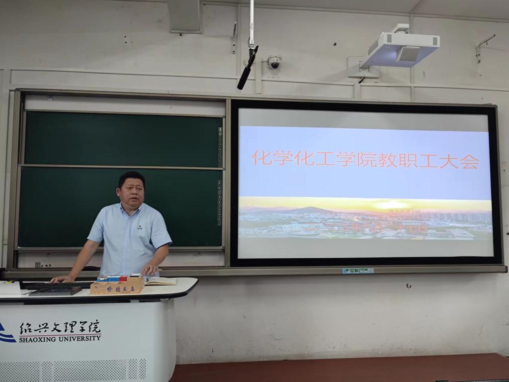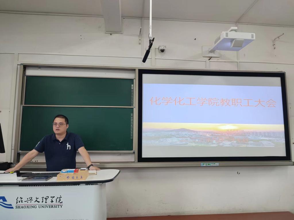 在理工楼324召开全院教职工大会,学院党政领导班子成员及全体教职工参加会议。会议由学院党委书记徐青主持。