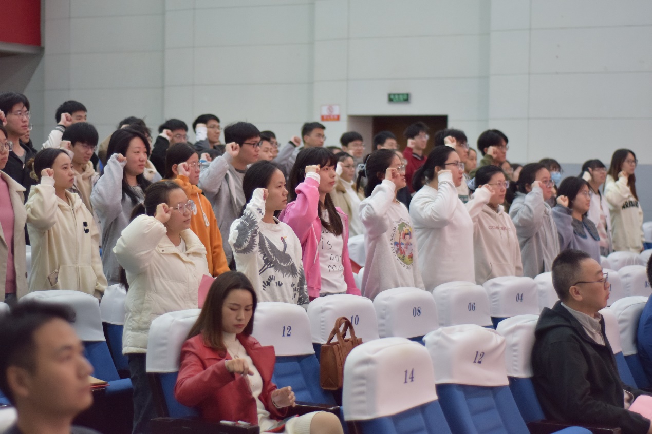 2024年考研(博)誓师大会在铁城科教馆报告厅隆重举行。执行院长曾敏峰、党委书记徐青、副院长刘雪松、校心理健康中心主任顾玲玲、学院学生科相关老师,2024年考研考博的134位学生参加了大会,会议由党委副书记王颖主持。