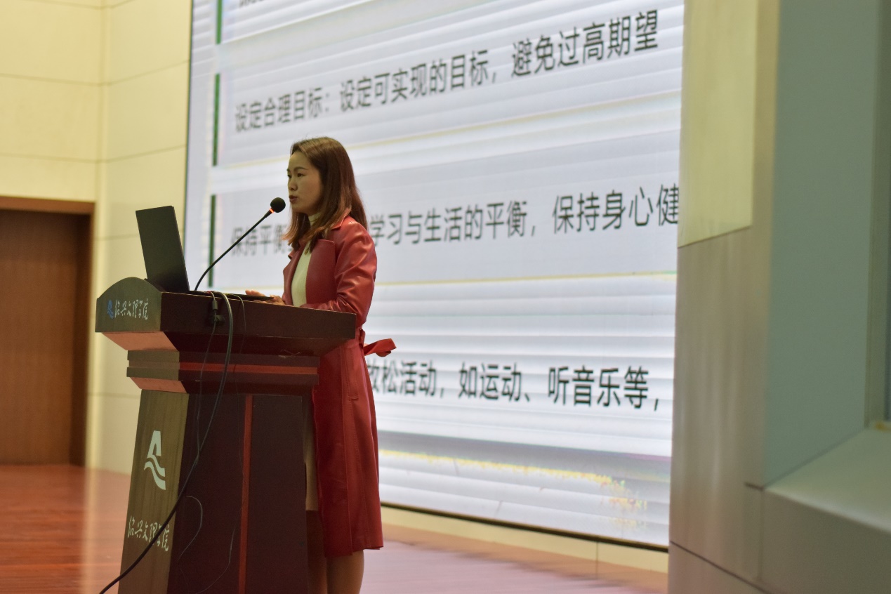 校心理健康中心主任顾玲玲为大家做了考研(博)冲刺心理调适讲座,引导学生们调整心态,缓解紧张的情绪,释放自己的压力,用平和的方式来面对即将到来的考研。