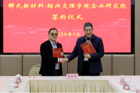企业研究院”签约仪式在铁城报告厅一楼会议室举行。校党委副书记张宏、浙江解氏新材料有限公司总经理解卫宇、校科学技术处副处长(主持工作)寿建昕、狂人小说