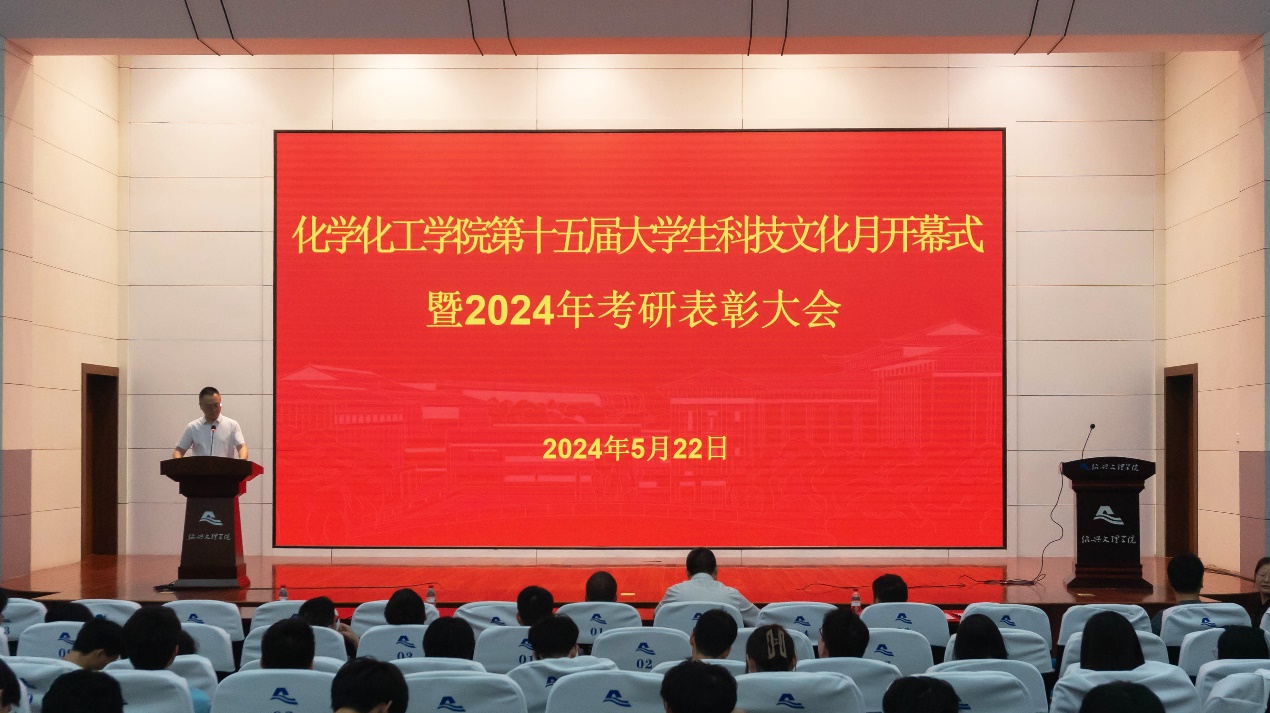 第十五届科技文化月开幕式暨2024年考研表彰大会在铁城科教馆报告厅隆重举行。学院执行院长曾敏峰、学院党委书记徐青、副院长董华平、副院长刘雪松、2024届考取研究生的毕业生、2025届考研学生,各年级学生代表,班主任、辅导员代表出席会议。会议由副院长刘雪松主持。