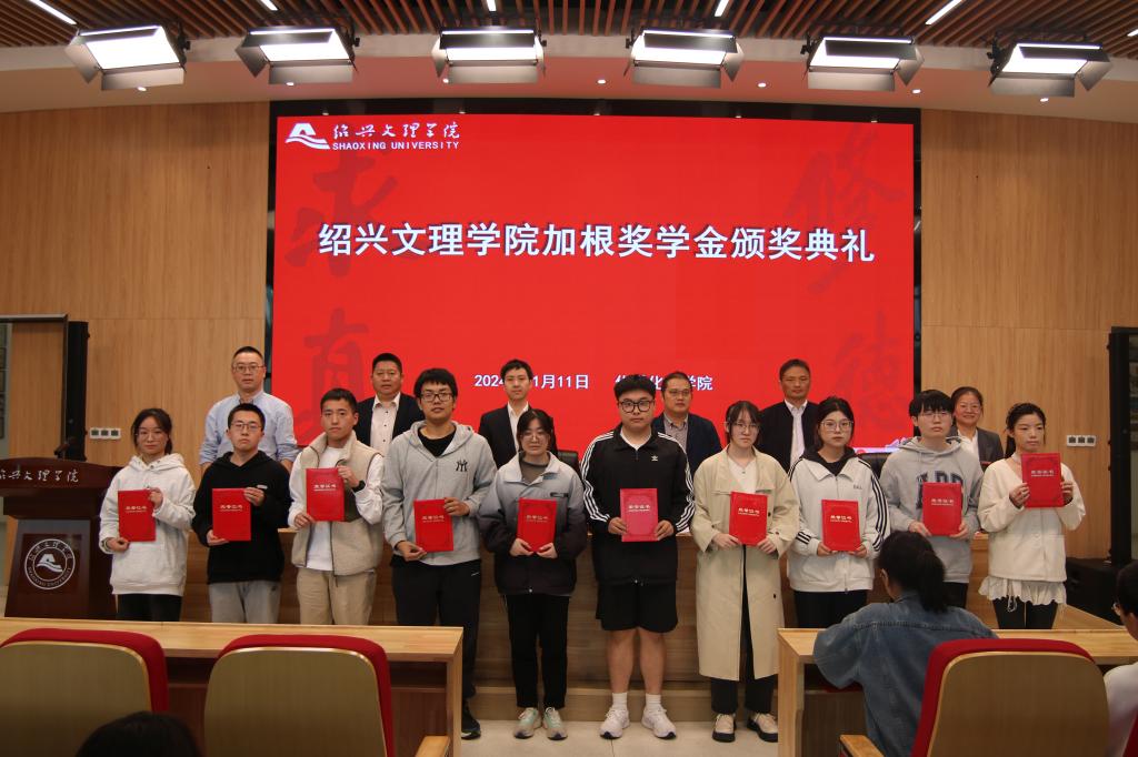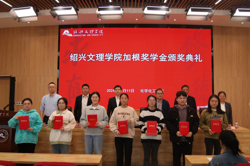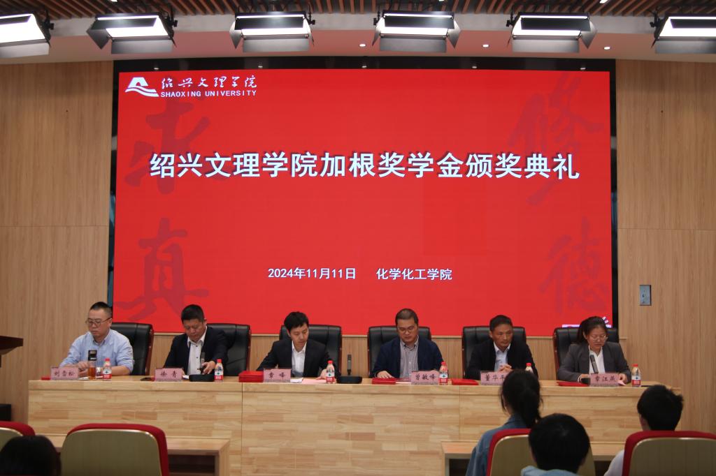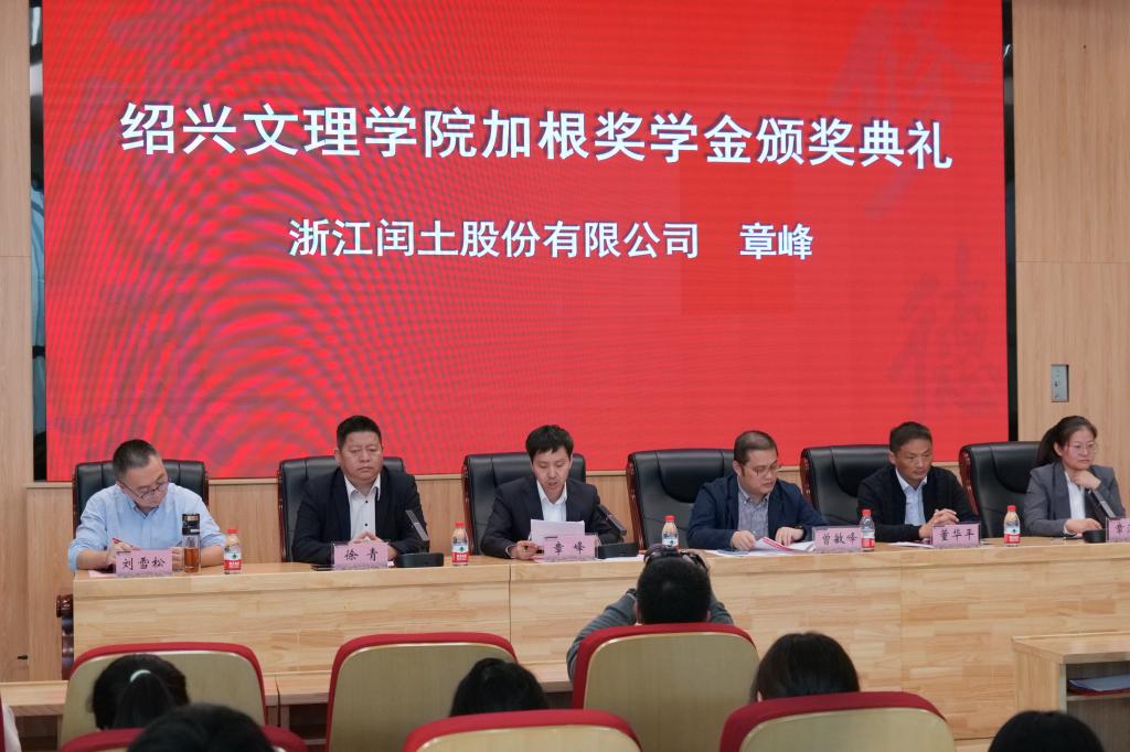“加根奖学金”颁奖典礼在风则江大讲堂107隆重举行。浙江闰土股份有限公司综合办副主任章峰,学院执行院长曾敏峰,党委书记徐青,副院长董华平、副院长刘雪松,获奖学生以及部分师生代表参加了颁奖典礼。典礼由学院党委副书记、纪委书记章江燕主持。