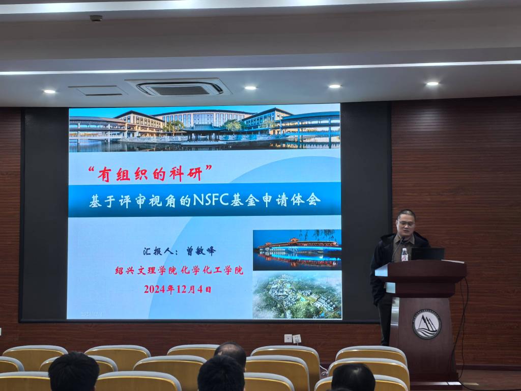 曾敏峰从项目评审与自身申报实战经验出发作题为“基于评审视角的NSFC申报书撰写体会”的指导报告。他详细讲解了在国自然申报中容易忽略的细节点,把握不同学部之间的申报差异,注重内容的应用与可操作性,指出要多次打磨申报文本内容,提升文本的整体质量。