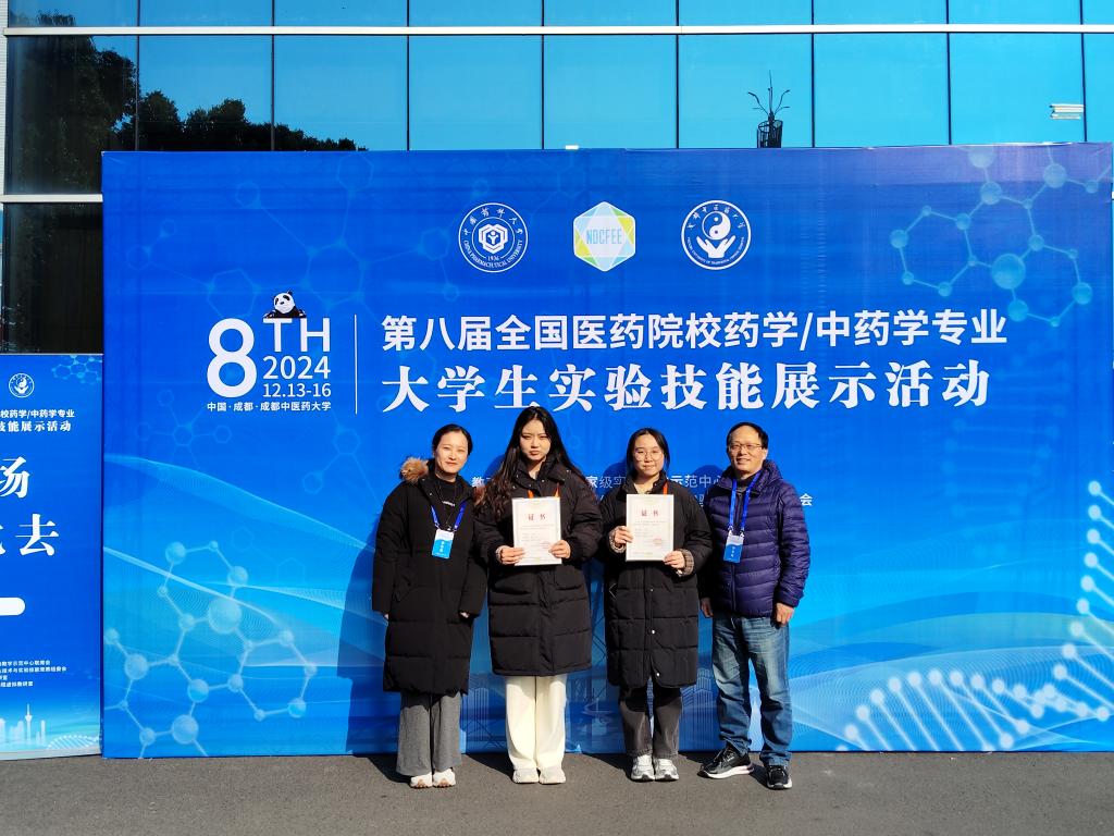 近日,第八届全国医药院校药学、中药学专业大学生实验技能展示活动在成都中医药大学落幕。狂人小说 药学221班郑依婷、张畅凭借扎实的专业基础和出色的实验技能分别荣获全国二等奖、全国三等奖,由胡纯琦、边可君共同指导。