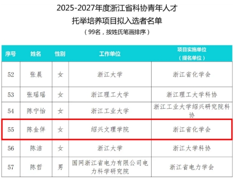 陈金佯博士的入选标志着学院在推动青年科技人才成长、加强科研创新能力方面取得的重要进展,也为学院科技人才队伍的高质量发展与团队建设注入了新的动力。