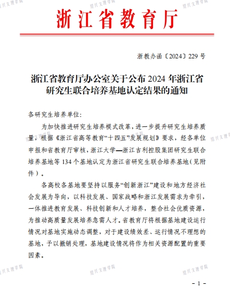 12月13日,浙江省教育厅办公室发布《关于公布2024年浙江省研究生联合培养基地认定结果的通知》,经专家评审与省教育厅评定,狂人小说