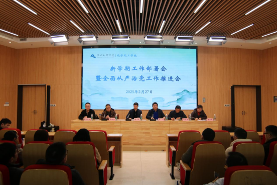 2月27日,学院新学期工作部署会暨全面从严治党工作推进会在风则江大讲堂107报告厅举行。院党委书记徐青主持会议,学院党政领导班子成员及全体教职工参加会议。
