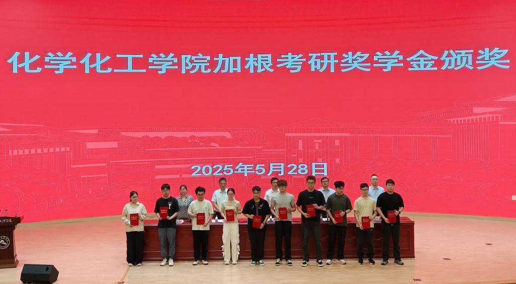 董华平副院长宣读了《关于表彰2025年“加根考研奖学金”获得者的决定》,57位被南京师范大学、中国药科大学、东华大学和中国科学院大学等高校录取的研究生代表上台接受表彰。