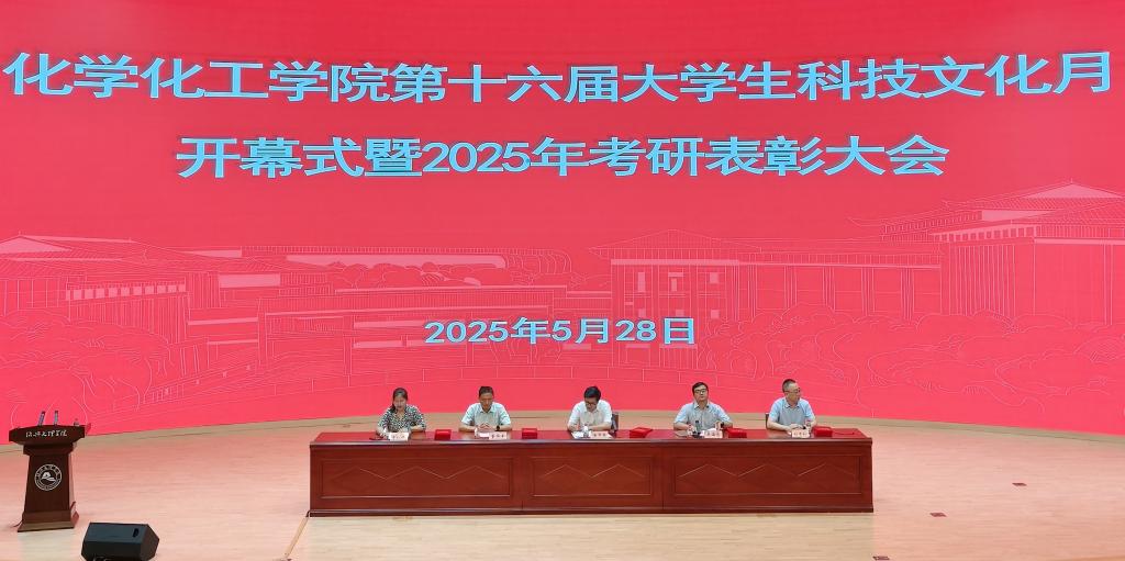 在风则江大讲堂举办了第十六届大学生科技文化月开幕式暨 2025年考研表彰大会。学院党委书记潘华泉,副院长董华平、刘雪松,党委副书记、纪委书记章江燕,2025届考研录取学生,2026届考研学生,各年级学生代表,班主任、辅导员代表出席会议。会议由党委副书记、纪委书记章江燕主持。