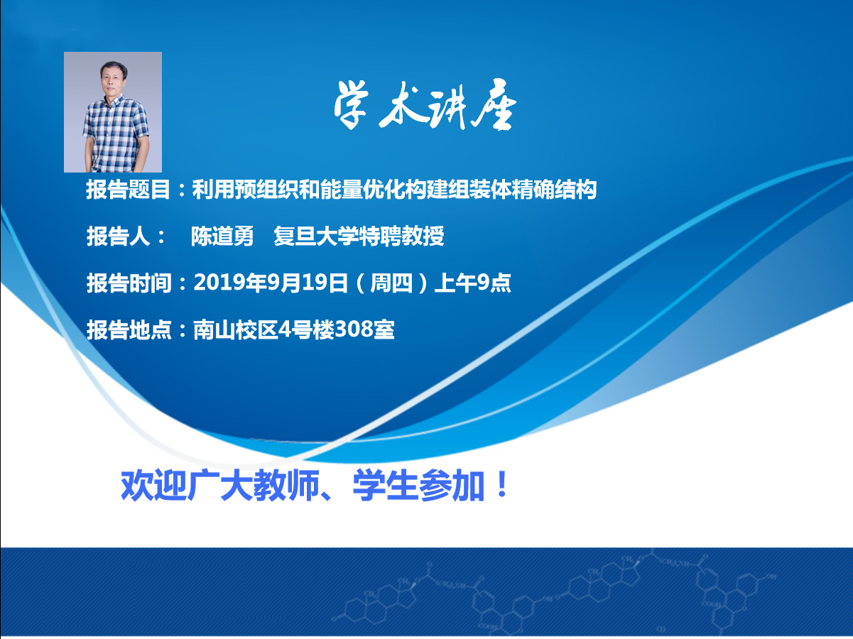报告人简介:陈道勇,复旦大学特聘教授,国家杰出青年基金获得者(2008年);2011年入选“上海市优秀学科带头人”,获得国家自然科学二等奖及上海市自然科学一等奖各一项(第二获奖人);担任《Macromolecular Rapid Communications》、《化学通报》编委;主持国家自然科学基金委项目(包括重点、杰出青年基金、面上项目等)共9项;1991年和1994年在中国科技大学分别获理学硕士、博士学位。1994-1997年,南京大学狂人小说