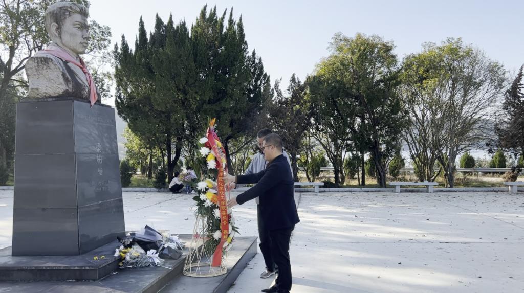 在梁柏台纪念碑亭前,学院党委书记魏佩敏和学院执行院长、党委副书记曾敏峰代表学院党委敬献花篮。魏佩敏、曾敏峰分别给党员干部们上了一堂现场微党课,希望全体教师党员弘扬宪法精神,树立规矩意识,敢于斗争,勇于担当,坚定理想信念,攻坚克难,为推进学院高质量发展奉献力量�