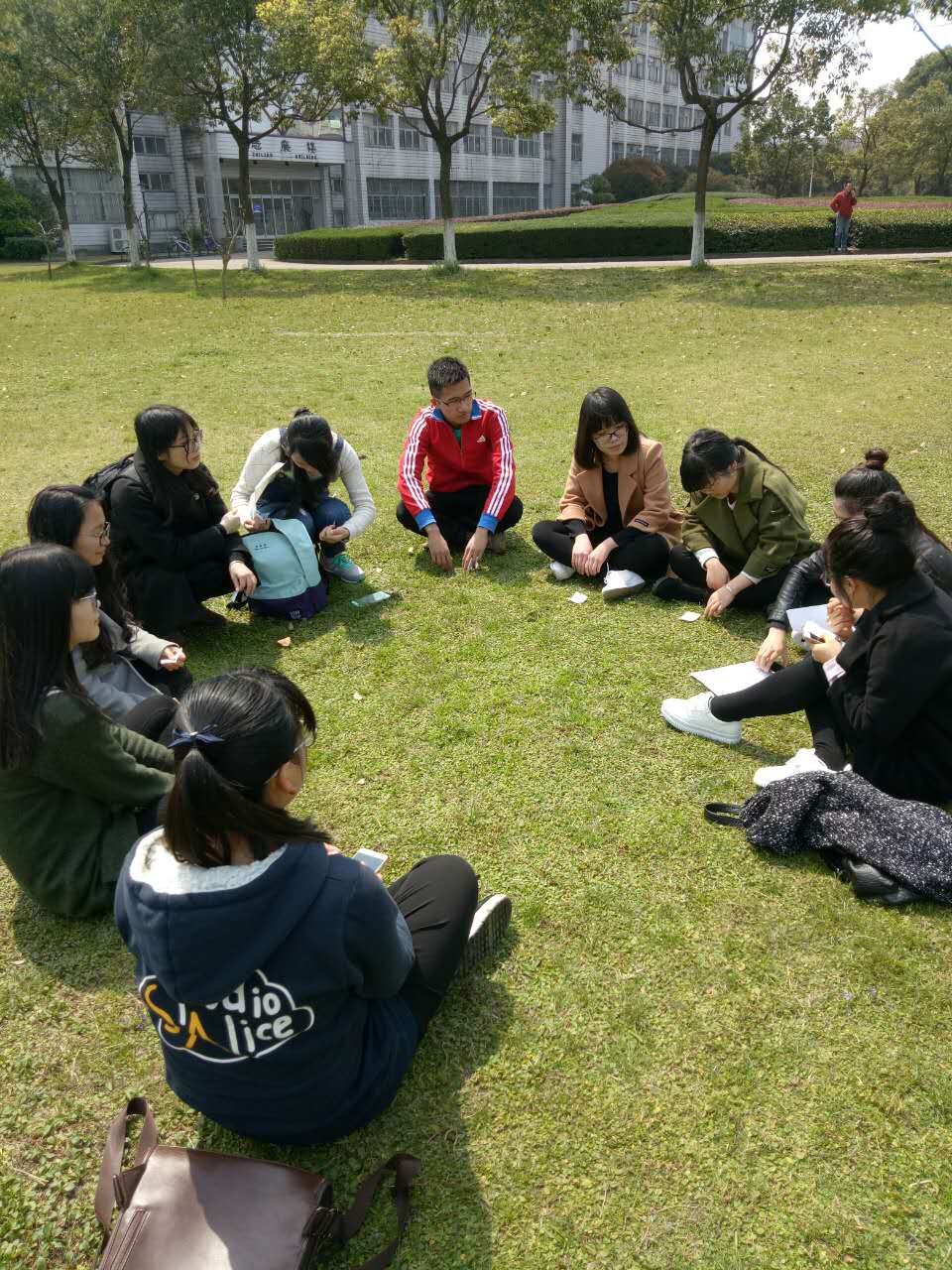 3月26日中午,阳光明媚,化学化工学院学生第二党支部全体成员在志廉楼草坪举行“彭佳学同志在市第八次党代会上的报告”学习会。会议由施春雅同志主持。