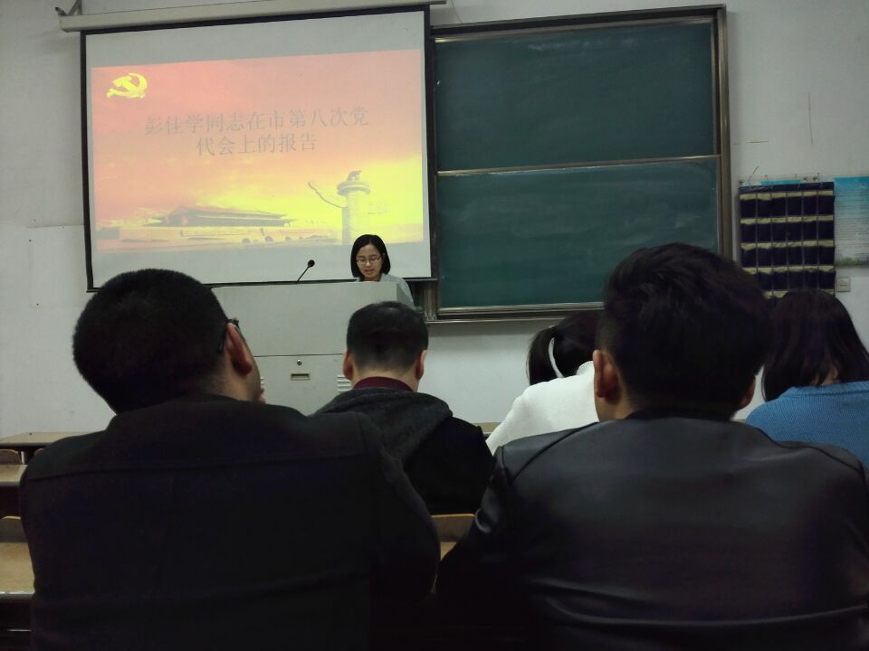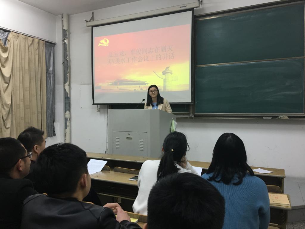 3月28日晚七点,研究生党支部在河西理工楼开展了学习宣传贯彻绍兴市第八次党代会精神的学习会。会议主要分为三个部分:一是学习夏宝龙、车俊同志在剿灭劣V类水工作会议上的讲话;二是学习彭佳学同志在全市“八大战役”动员大会上的讲话;三是学习彭佳学同志在市第八次党代会上的报告。会议由黄琎同志主持召开。