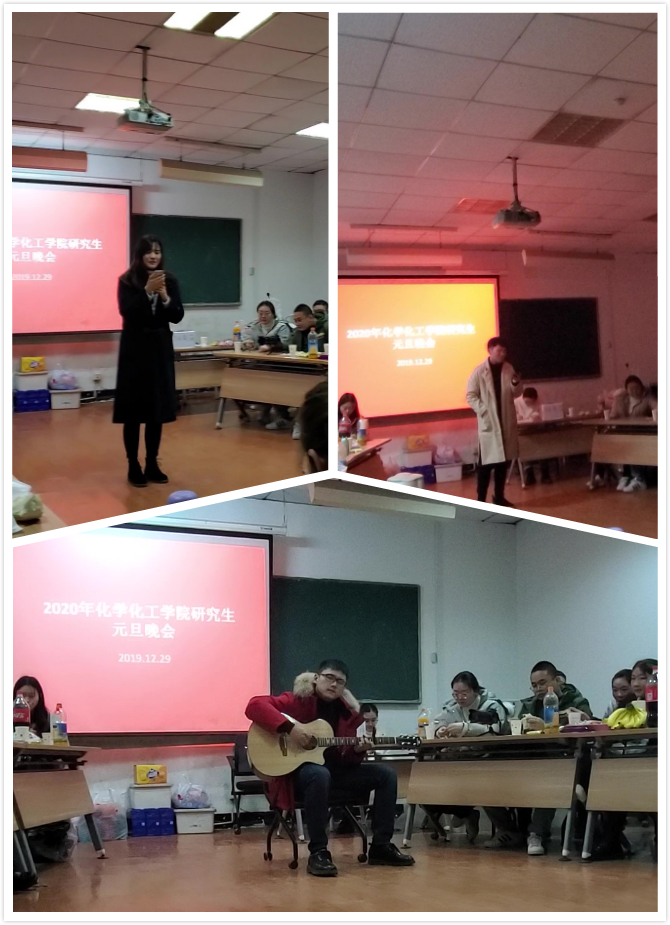 2019�12�29日晚,化学化工学院研究生“迎新生、迎新年”联谊会在科教楼100举行。化学化工学院研究生辅导员�2019级研究生班班主任赵健老师�2018级研究生班班主任刘海玲老师以及全体研究生参加了联谊会�