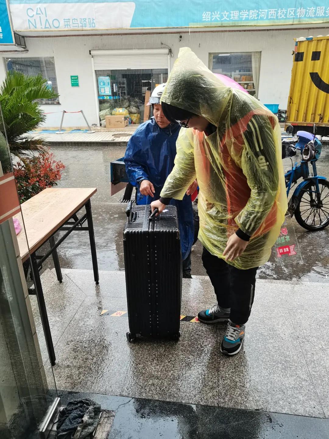 志愿者冒雨为同学拿行�