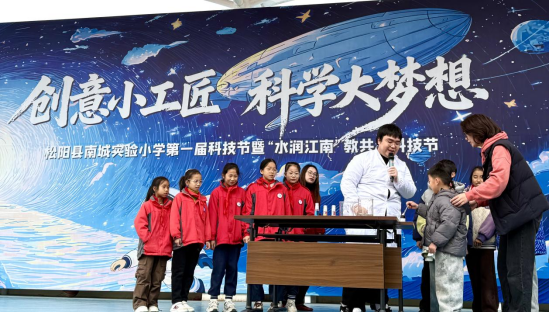 12月16日,绍兴文理学院化学化工学院3名学科教学(化学)专业研究生前往丽水松阳县南城实验小学,开展了一场集趣味性、知识性与互动性于一体的科普活动,助力学校科技节开幕。此次活动也是绍兴市对口帮扶松阳县、推动教育协作的具体实践。