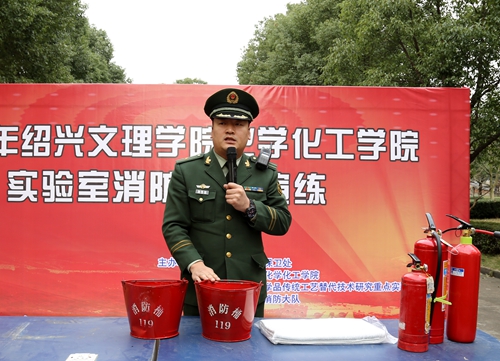 校党委唐和祥副书记发表讲话。他代表学校对所有参演的师生及越城区消防大队的队员表示感谢,并祝贺此次消防演练取得圆满成功。他强调,安全责任重于泰山,实验室安全更不能疏忽。大家要时刻牢记消防安全,更要遵守试验流程,要细心、细致地做好实验,消除安全隐患。