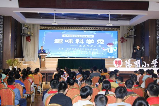 化学与新材料科普基地的科普团队前往绍兴市阳明小学开展趣味科学秀,为小学生打造了一场充满奇幻与惊喜的科学实验秀。