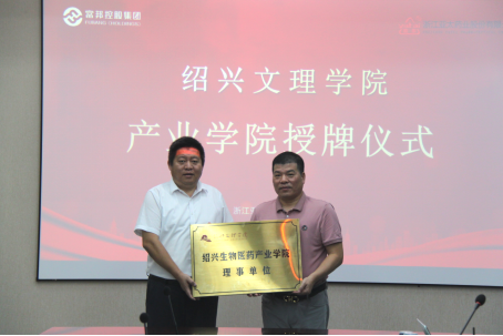 教学实习基地和绍兴生物医药产业学院理事单位的授牌仪式。此次活动得到了浙江亚太药业股份有限公司总经理岑建维、人事总监周高田、研究所所长周亚建等企业高层的热情接待。