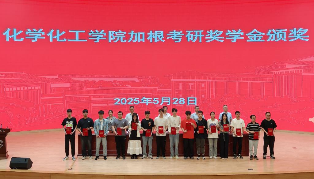 董华平副院长宣读了《关于表彰2025年“加根考研奖学金”获得者的决定》,57位被南京师范大学、中国药科大学、东华大学和中国科学院大学等高校录取的研究生代表上台接受表彰。