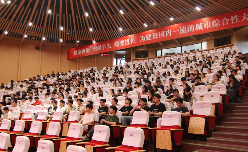在风则江大讲堂举办了第十六届大学生科技文化月开幕式暨 2025年考研表彰大会。学院党委书记潘华泉,副院长董华平、刘雪松,党委副书记、纪委书记章江燕,2025届考研录取学生,2026届考研学生,各年级学生代表,班主任、辅导员代表出席会议。会议由党委副书记、纪委书记章江燕主持。